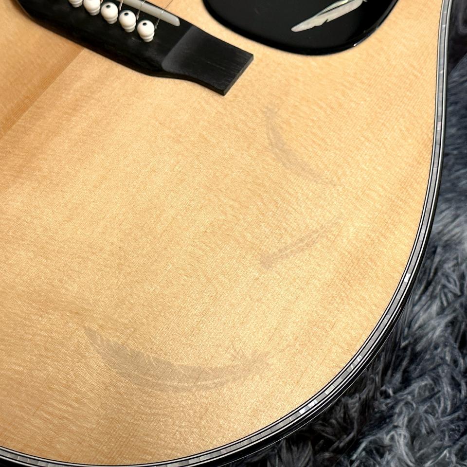 ボディトップにはホログラフィック塗装で金色のイーグルの羽を表現。ボディトップの80’s シトカスプルースの色味と相まって角度によって見え隠れします。