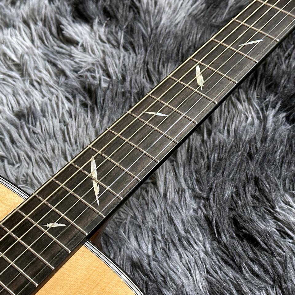 2026年限定モデルでは、音と個性を追求し、選び抜かれた素材をセレクトしました。伐採してから40年以上の時を経た80’s シトカスプルースと、上質なインディアンローズウッドを組み合わせ、さらに本モデルの個性として、ボディバックセンターにプレミアム・フレイム・マホガニーを使用しています。指板やボディトップなど各所には天空を高く舞う“Eagle”の羽のデザインを施し、音色とデザインの両面から“The Eagle”ならではの独創的な世界観を創り上げました。
