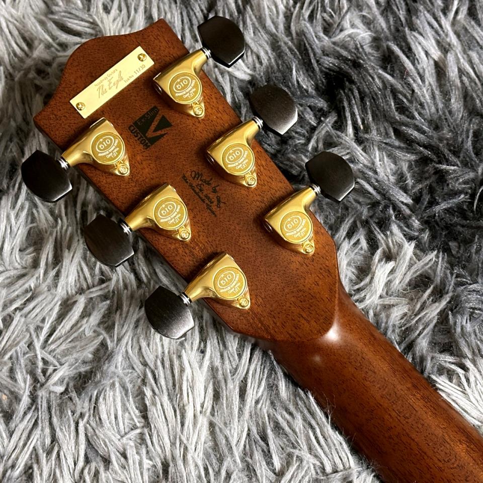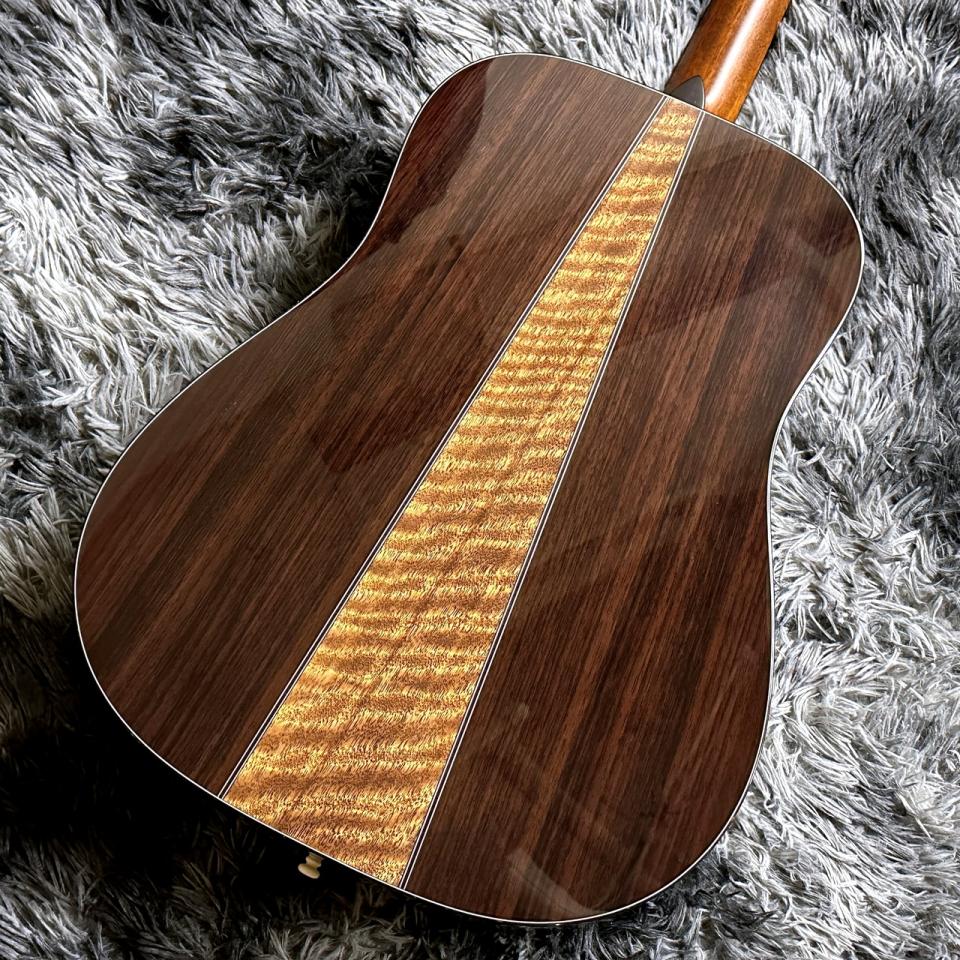 トップ材に使用された80’s シトカスプルース は、40年以上にわたる天然乾燥を経ており、一般的なシトカ・スプルースと比べてサスティーンが長く、乾いた質感の中に心地よい高音を備えたトーンを生み出します。