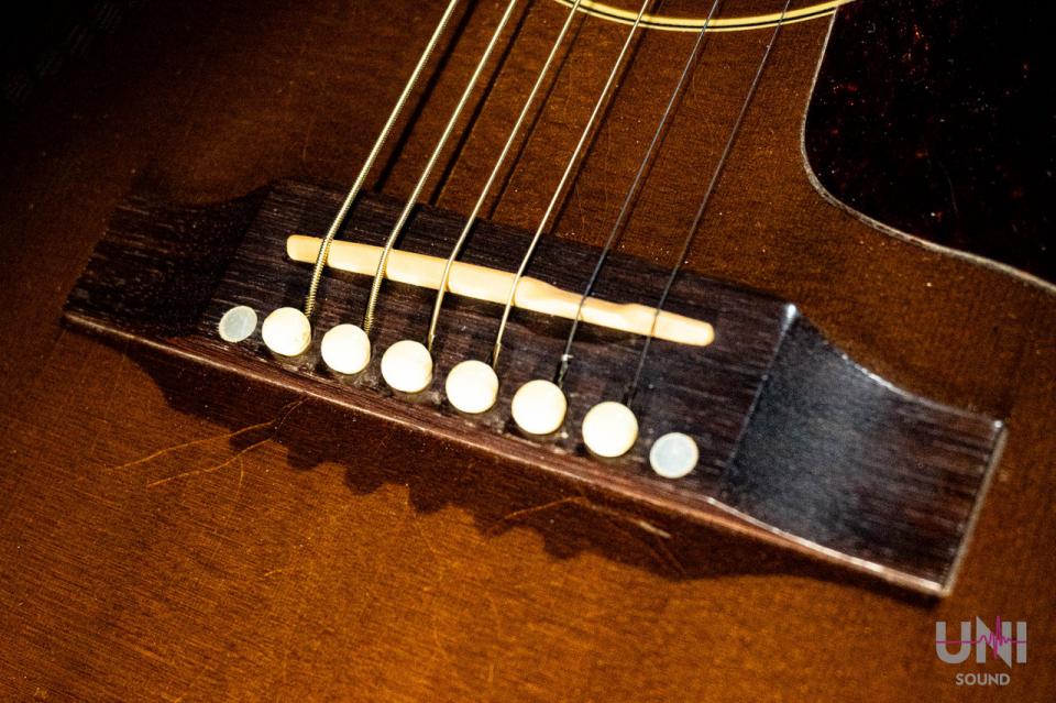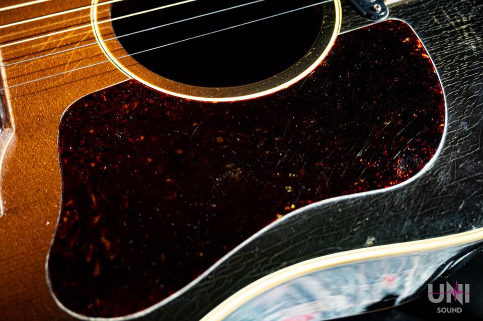 ハウリングを防ぐために生鳴りを抑える必要があるためトップ材を合板にし、ブレーシングをラダーブレーシングというあまり鳴らないものを採用したり、当時色々工夫がなされていたギターではあるのですがやはりアンプから出る音はアコースティックギターのものではありません。フルアコをアンプにプラグインしたサウンドに近いです。