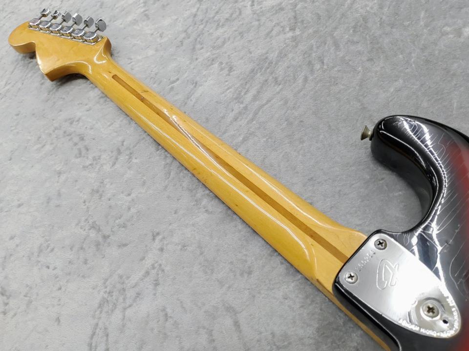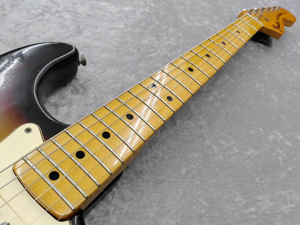 ティルトアジャストの3点止めメイプルネック、ブレットナットとストリングガイドが2個のラージヘッド、ダイキャストブリッジなどの特徴を持つ1972年後期製(シリアル:355250/ネックデイト:22NOV72B)ストラトキャスターが入荷しました。ウェイトは比較的軽めの約3.55kg。ヴィンテージらしい程良く角の取れた音色、カラっとした元気の良さを合わせ持つこの年代らしいサウンドです。