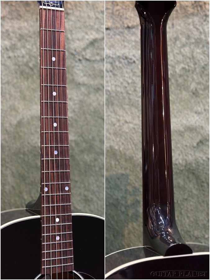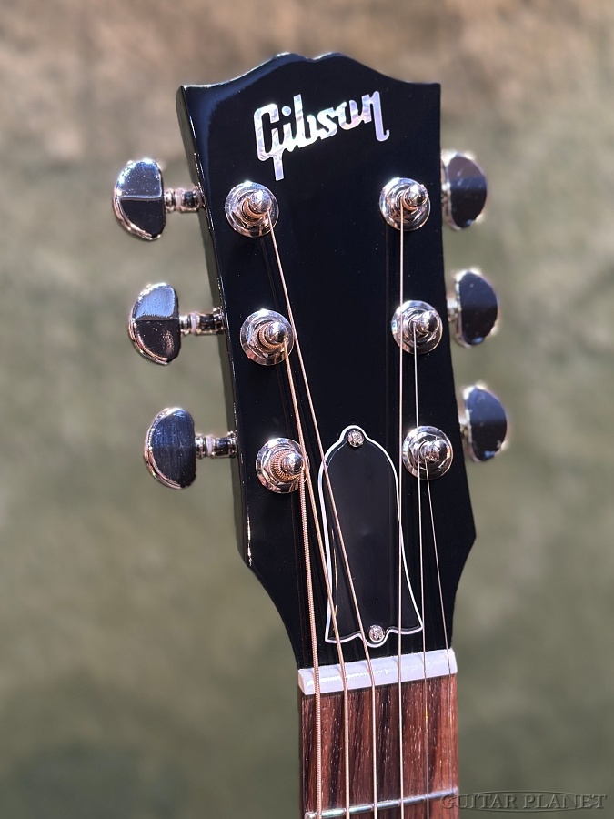 ヘッドに輝くGibsonのモダンロゴには、『マザー・オブ・パール』で彩られ、弦振動を効率的にボディーに伝達するようにデザインされた『TUSQ/タスク』のナット、ペグは耐久性とチューニング精度に定評のある『グローバー・ペク』をマウント、握りこみやすい『スリム・テイパー』の採用など今風の要素が上手くブレンドされています。
