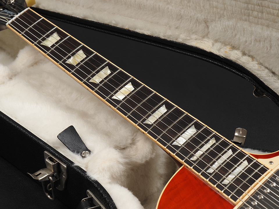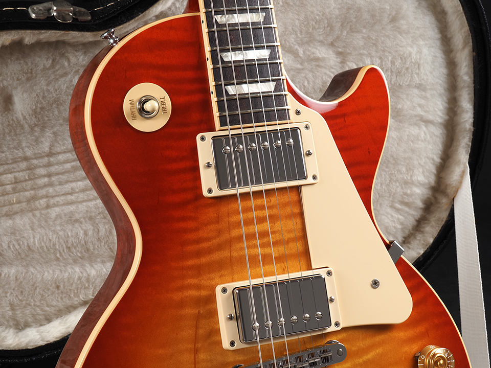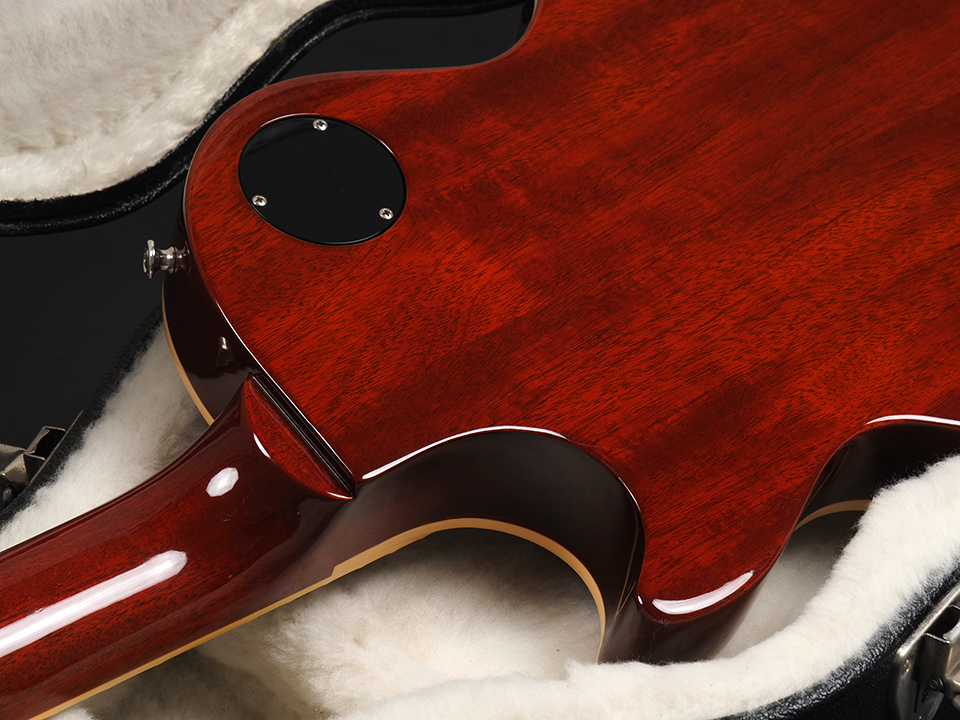Heritage Cherry Sunburstの美しいフィニッシュは、クラシックなレスポールの魅力を象徴するルックス。トップの杢目と相まって、重厚感と存在感を兼ね備えた仕上がりとなっており、ステージでも映える魅力的な印象を与えます。