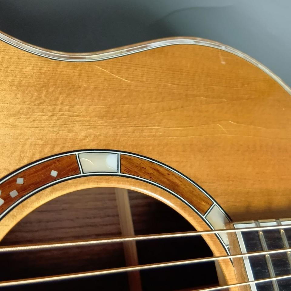 弾いた瞬間にこれはいいギターだと感動したスタッフが南部氏に無理をお願いして店頭販売用に頂いた形になります。