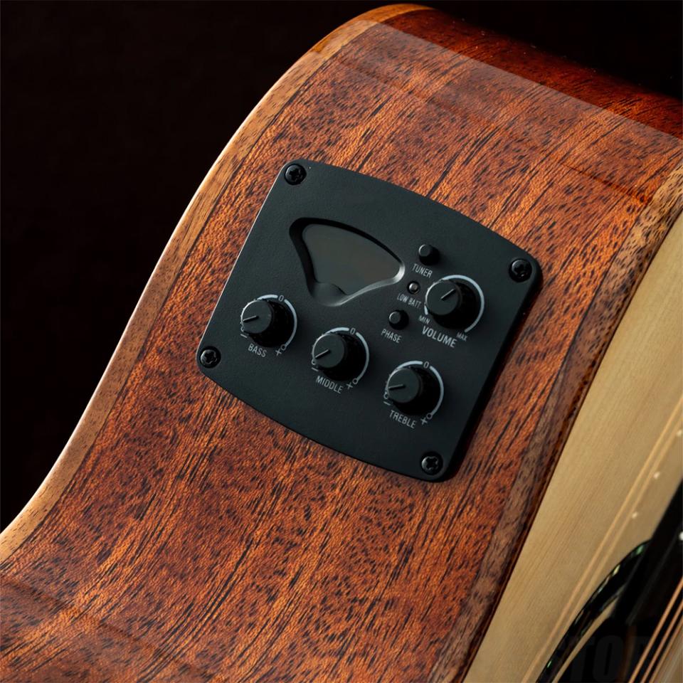 サイド&バックのマホガニーと組み合わせることで、温かみのある中音域と扱いやすいバランスの良いサウンドに仕上がっています。
