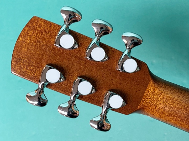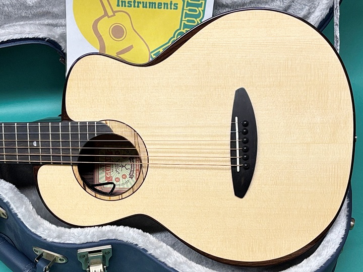 大きな特徴として、杉田健司氏監修の「一体共振」ブレイシングを採用しており、弦の振動がトップ板からボディ、ネック、ヘッドストックにまで伝わることで、豊かな音色を実現。
