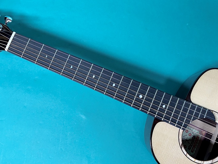 トラスロッドに問題はなく、フレットの凹みも見られません。サドルにも十分な余裕があり、当面はメンテナンスフリーでご使用いただけます。