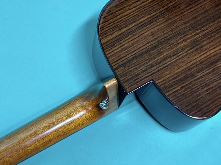 スケールは610mm、ナット幅は44mm。独自デザインのカッタウェイとネックボリュートにより、ハイポジションでの演奏性にも優れています。21フレット仕様もこのモデルの特徴です。