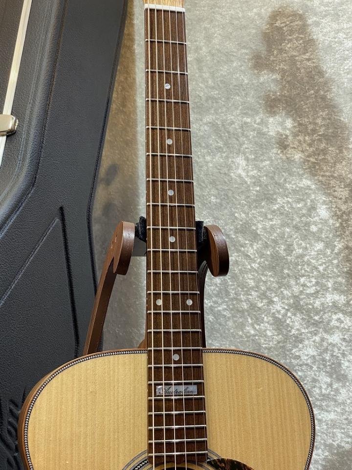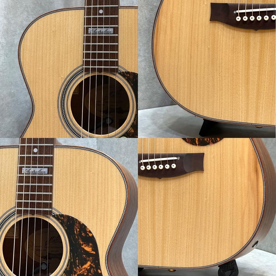 トップはブンヤにサイドバックはオーストラリアンブラックウッド。指板・ブリッジにはMatonで唯一のデザートアカシアが使われています。17Fには”Australian”のブロックインレイが輝きます。ブロックインレイは、フラッグシップモデルや一部のシグネイチャーモデルのみに採用されるもので、本モデルがMatonにとっていかに大切かが伝わります。