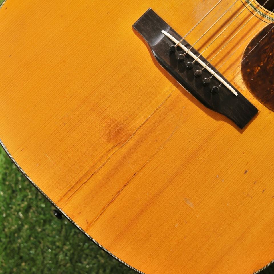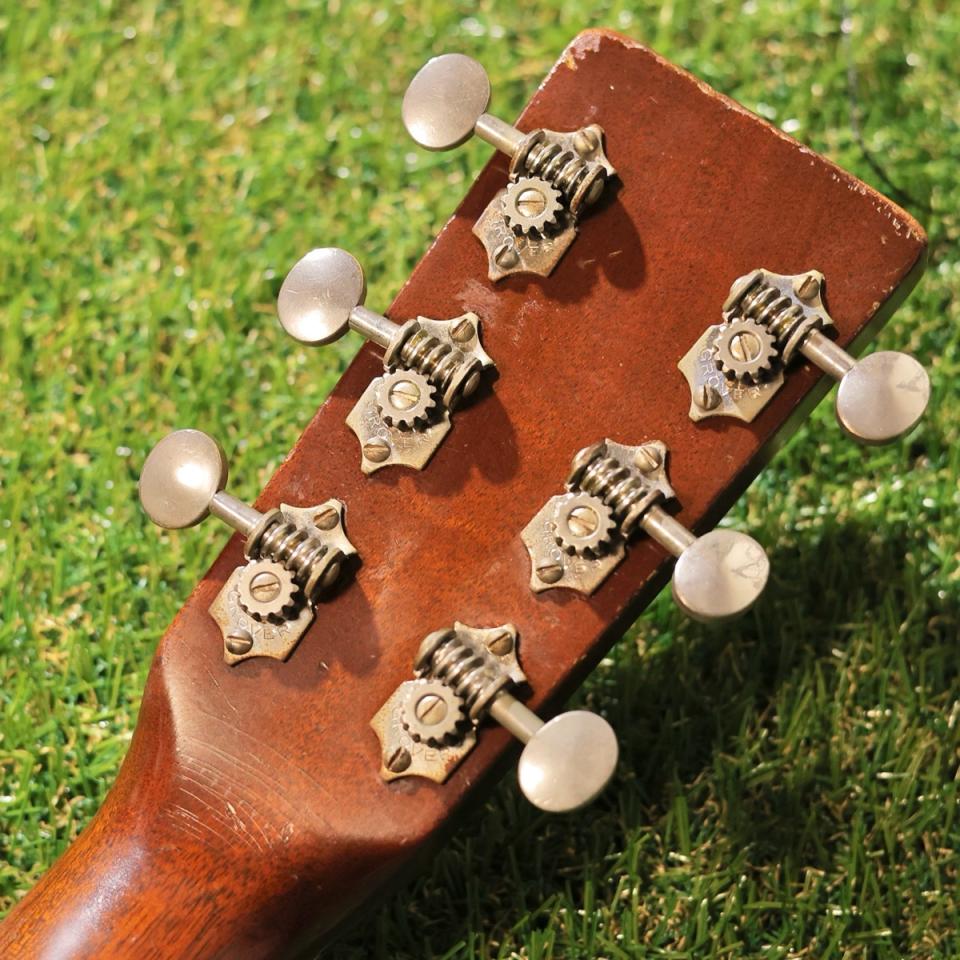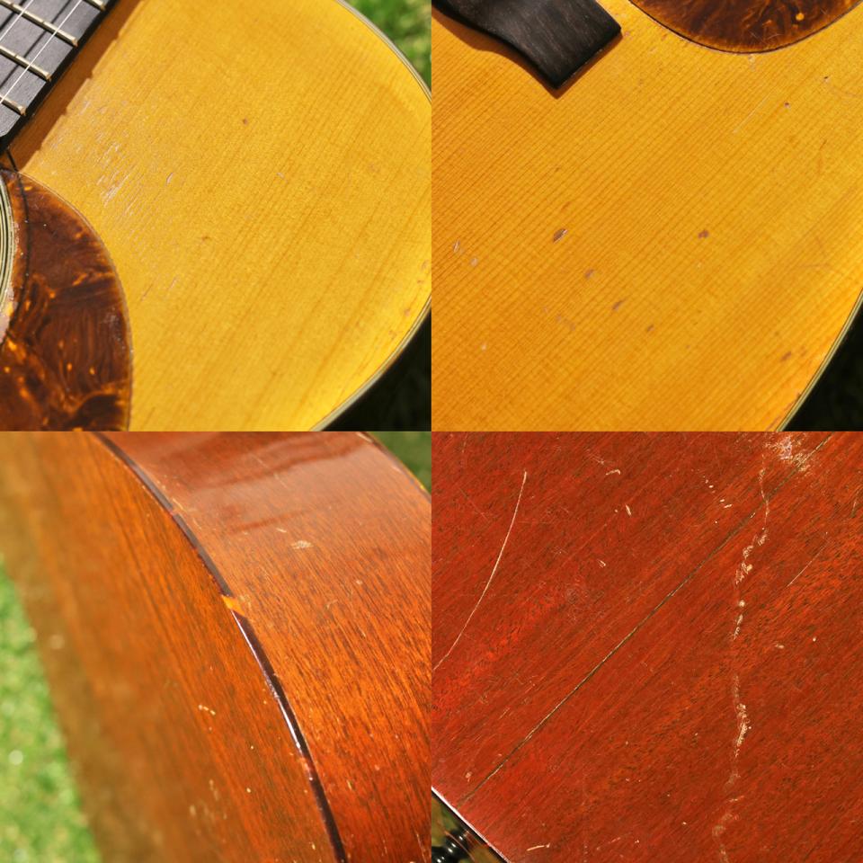 ボディには、目の詰まった上質なマホガニーとアディロンダック・スプルースの組み合わせ。スキャロップド・ブレーシングと相まって、この時代特有のレスポンスの速さと豊かな鳴りを実現しています。