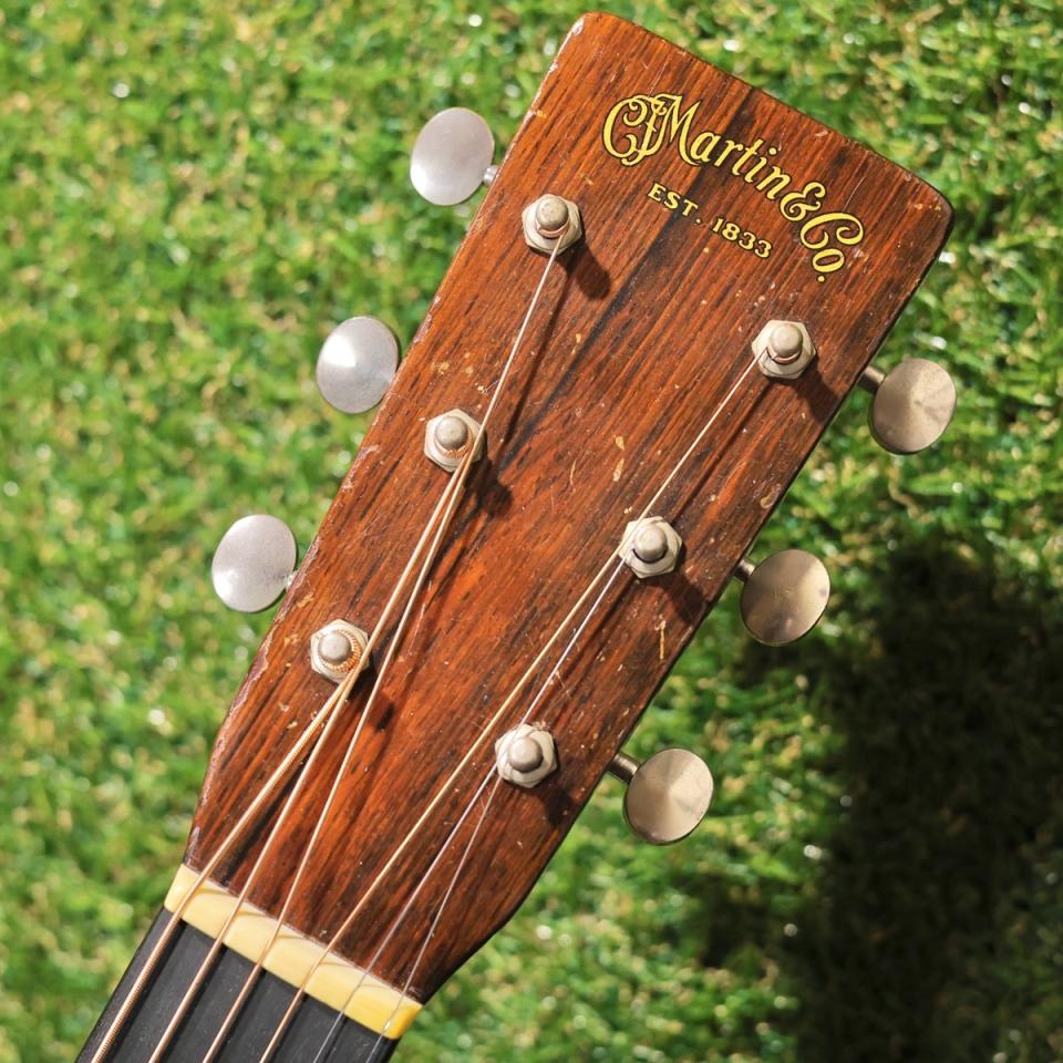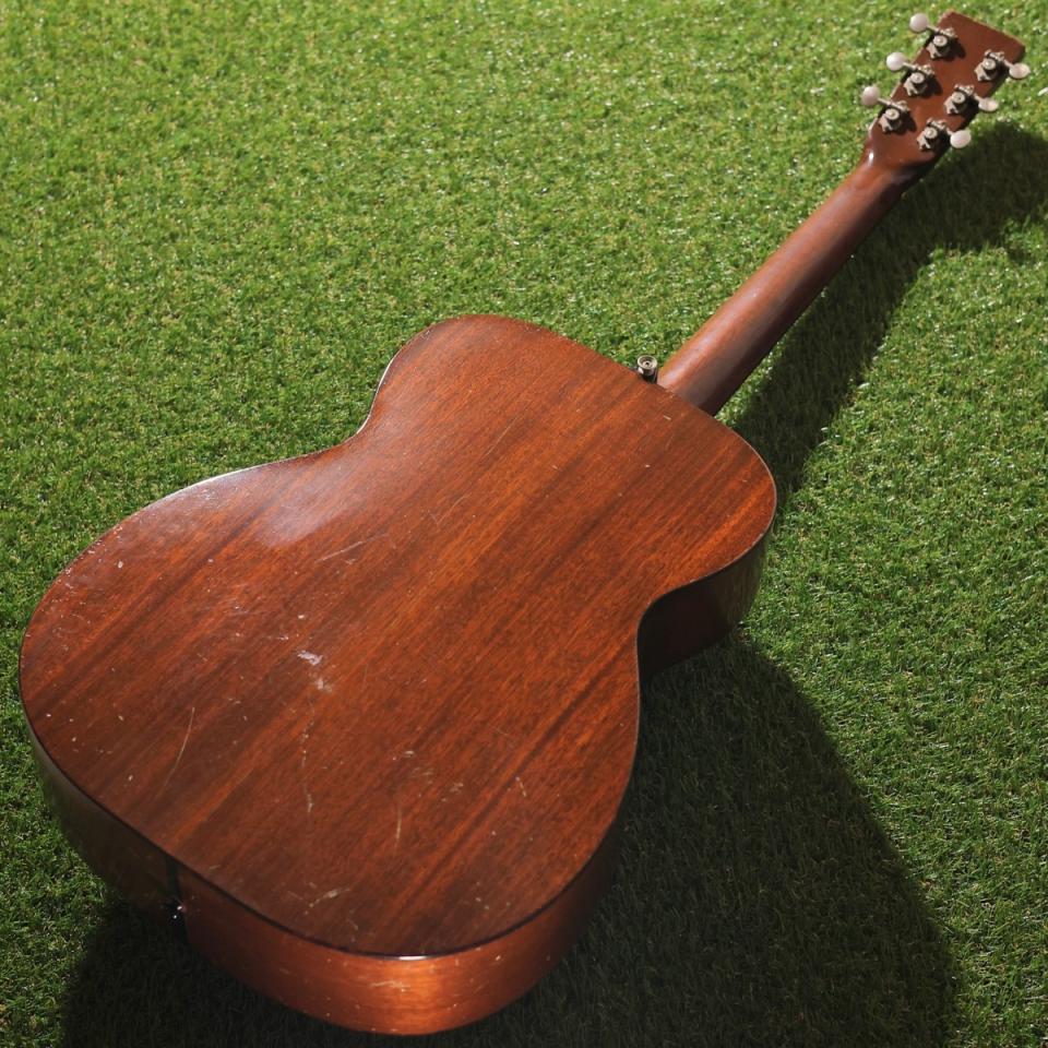 サウンドはまさに“別格”。まず驚くのは000サイズとは思えない豊かな音量。そしてTバーネック由来のカリッとした立ち上がりの良さ。1音1音が輪郭を持って前に飛び出しながらも、マホガニー特有の温かみと、長年弾き込まれたことによる“枯れ”が絶妙に共存しています。派手すぎず、それでいて確実に印象に残る音。まさにヴィンテージ・マーティンの真骨頂です。