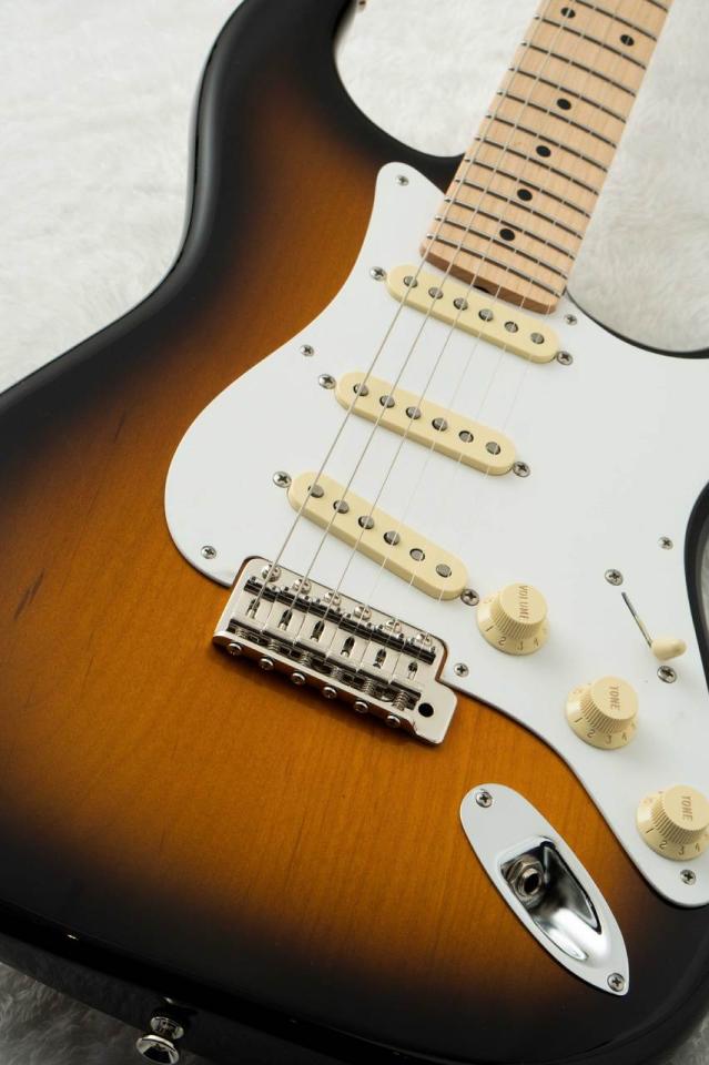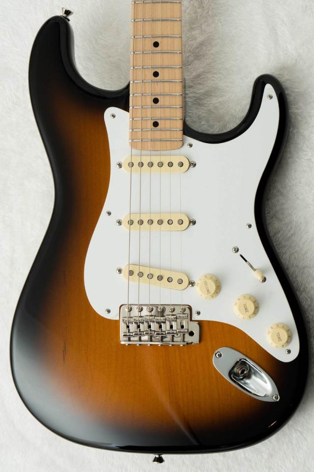 メイプルキャップネックではなく、スカンクラインを使用したメイプル1ピースネックを採用し、ボディには2ピースのアルダーを採用した57年頃をイメージした仕様となっております。