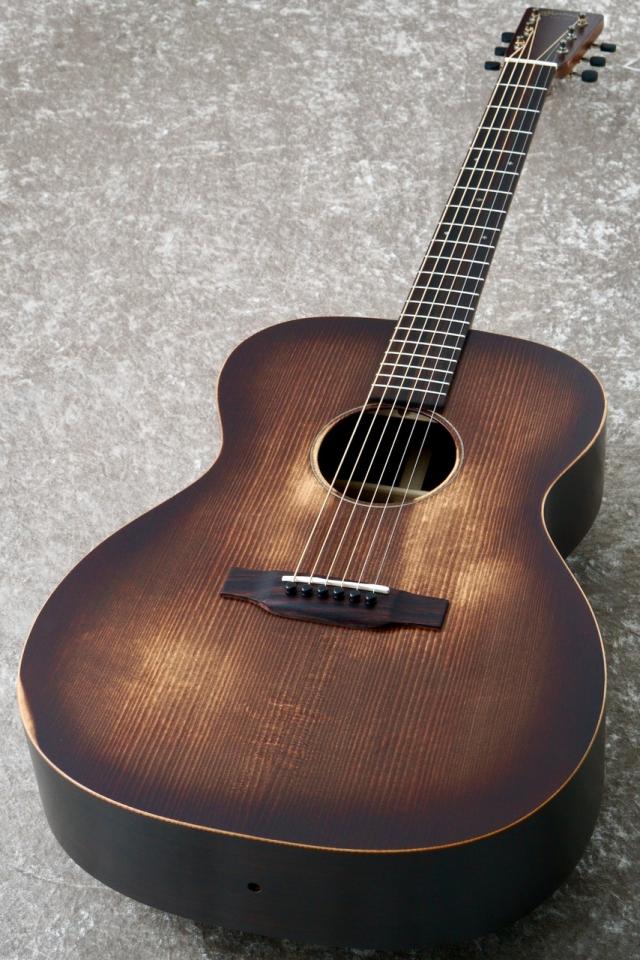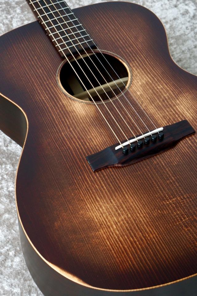 ディストレスト・サテンフィニッシュによって、ストリートミュージシャンが使い込んできたギターのような風格、サテン仕上げにより塗装分の重さがわずかに減り、木材の素直な音色の広がりが増し、優れたレスポンスを有しています。