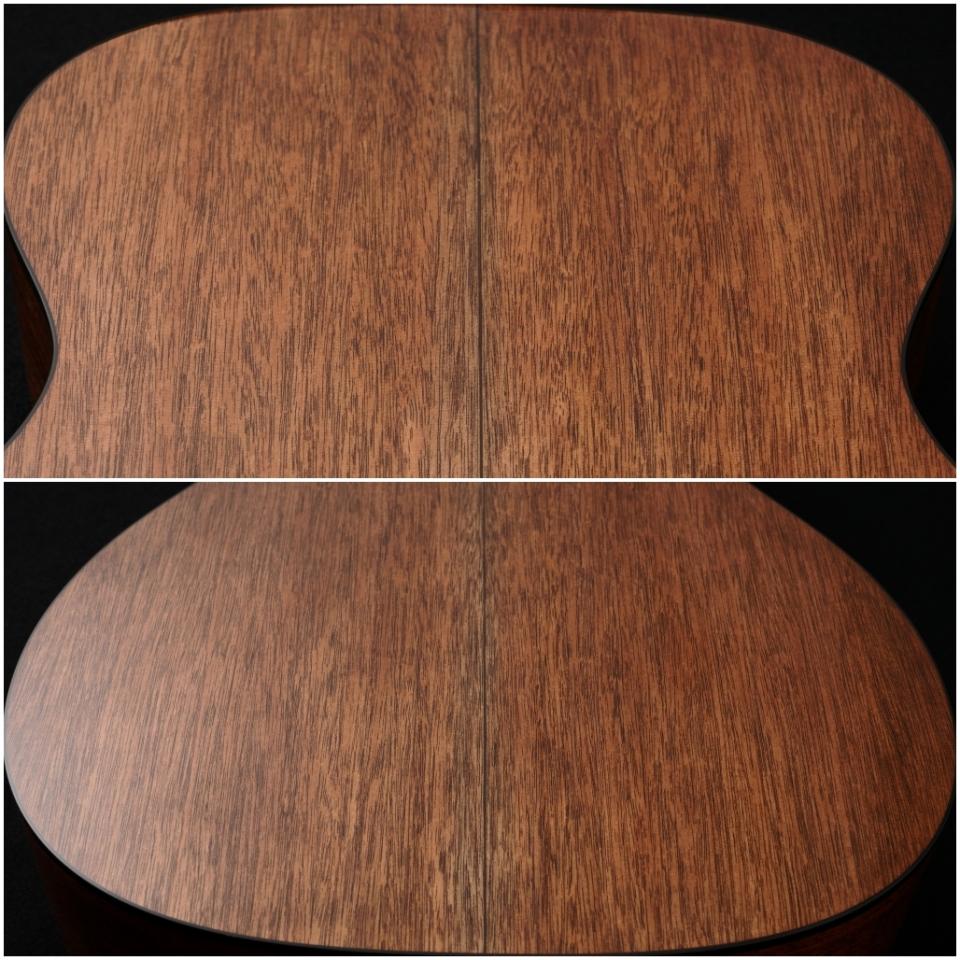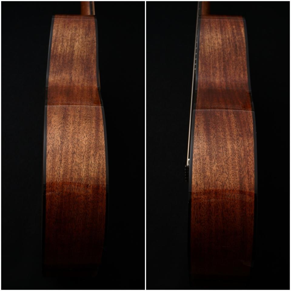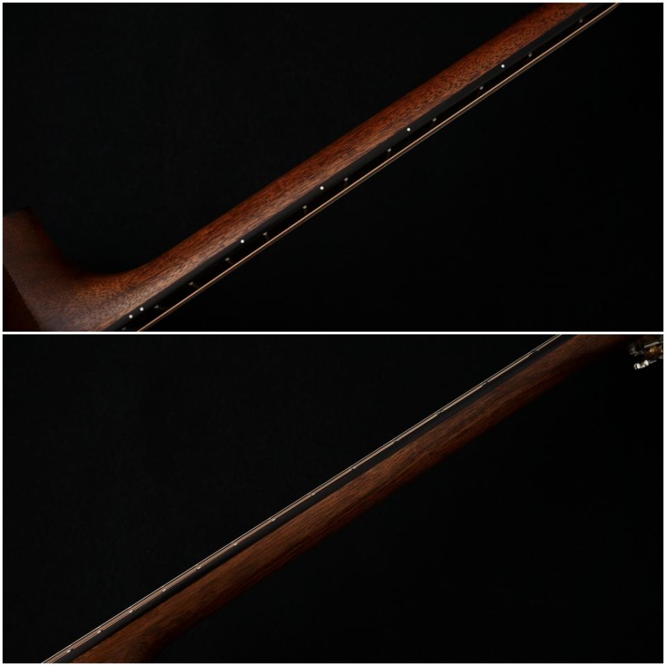 マホガニーを用いたギターは枯れたニュアンスのサウンド、柔らかで温かみのあるサウンド、あるいは両方と言った音色となる事が多いですが、本個体はウォームな成分が多い印象でございます。