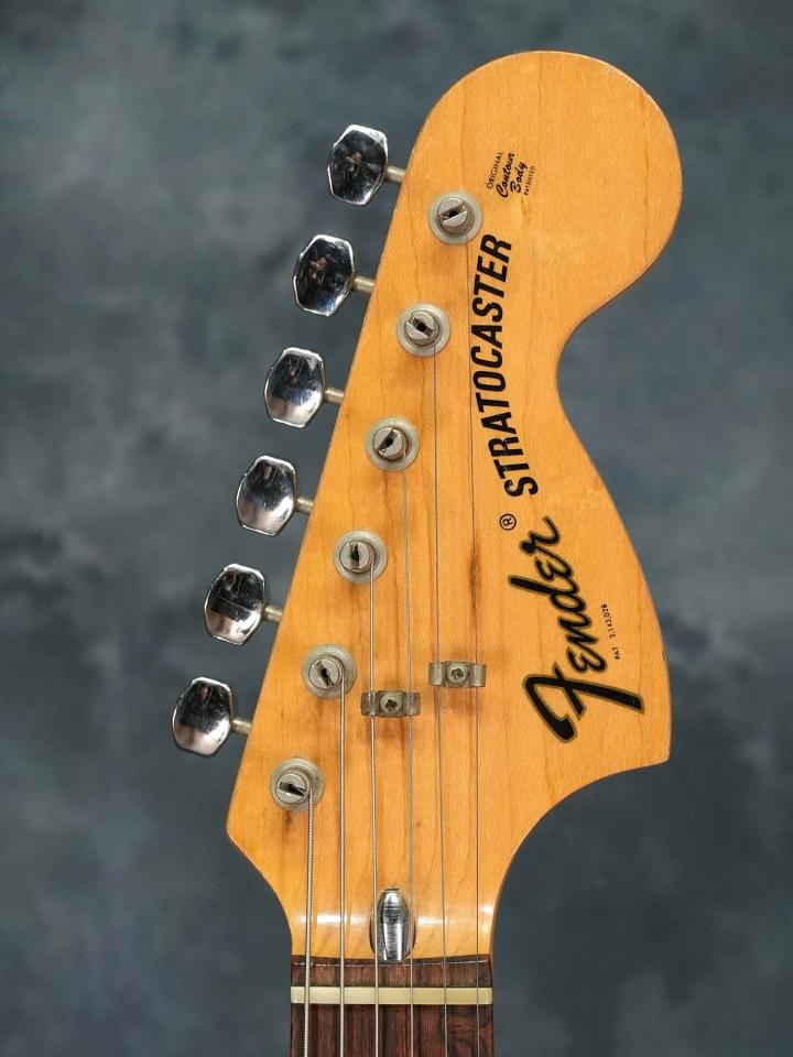 アッシュボディ、メイプルネック、ラウンドラミネイトされたローズウッド指板、ラージヘッドにCBSロゴ、2つのストリングガイド、Fender F-Keyチューナー、ピックアップはフロント・センター・リア共に73年~74年頃に見られるブラックボビンのスタガードポールピース、1974年以降の鍋頭のピックアップ取付ビス、ポットデイトは全て1973年です。