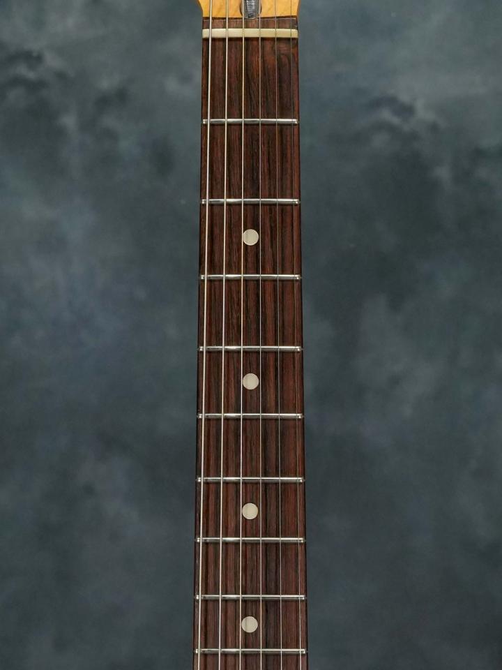 指板ラジアスが変更されている事による現代的な演奏性に加えて、アッシュならではのスッキリしながら太く枯れた音色が心地よく、ルックス・サウンド共に雰囲気の良いホワイト/ローズのストラトキャスターをお探しの方にオススメの一本です。