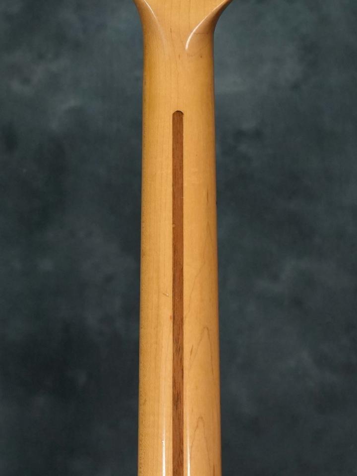 オリジナルの7.25インチ指板ラジアスから、リフレットに合わせて指板ラジアスは9.5インチに変更されており、7.25インチラジアスの弱点でもあるハイポジションのチョーキング時音詰まりを解消しています。オリジナルの3-Wayトグルスイッチから変更されておらず、アース周りにハンダの修正跡があります。
