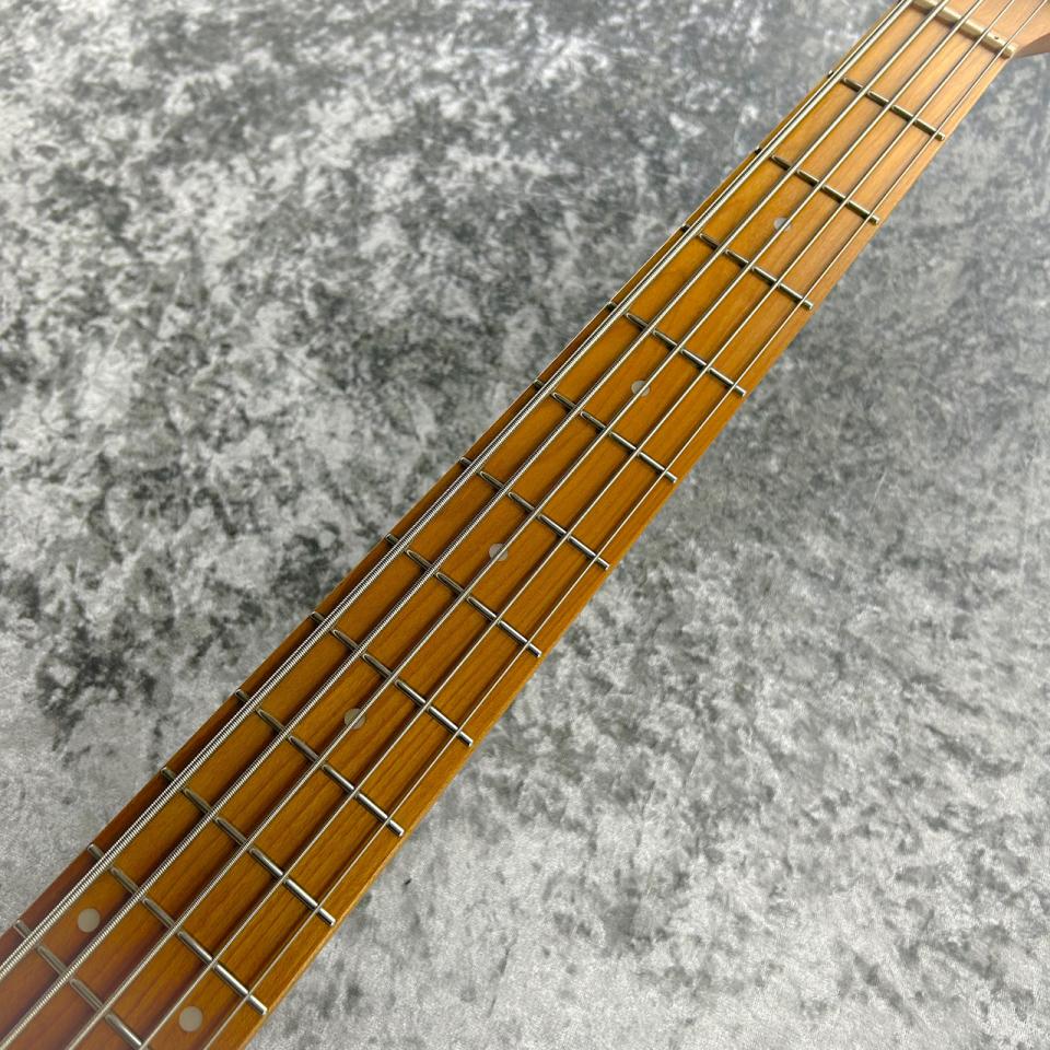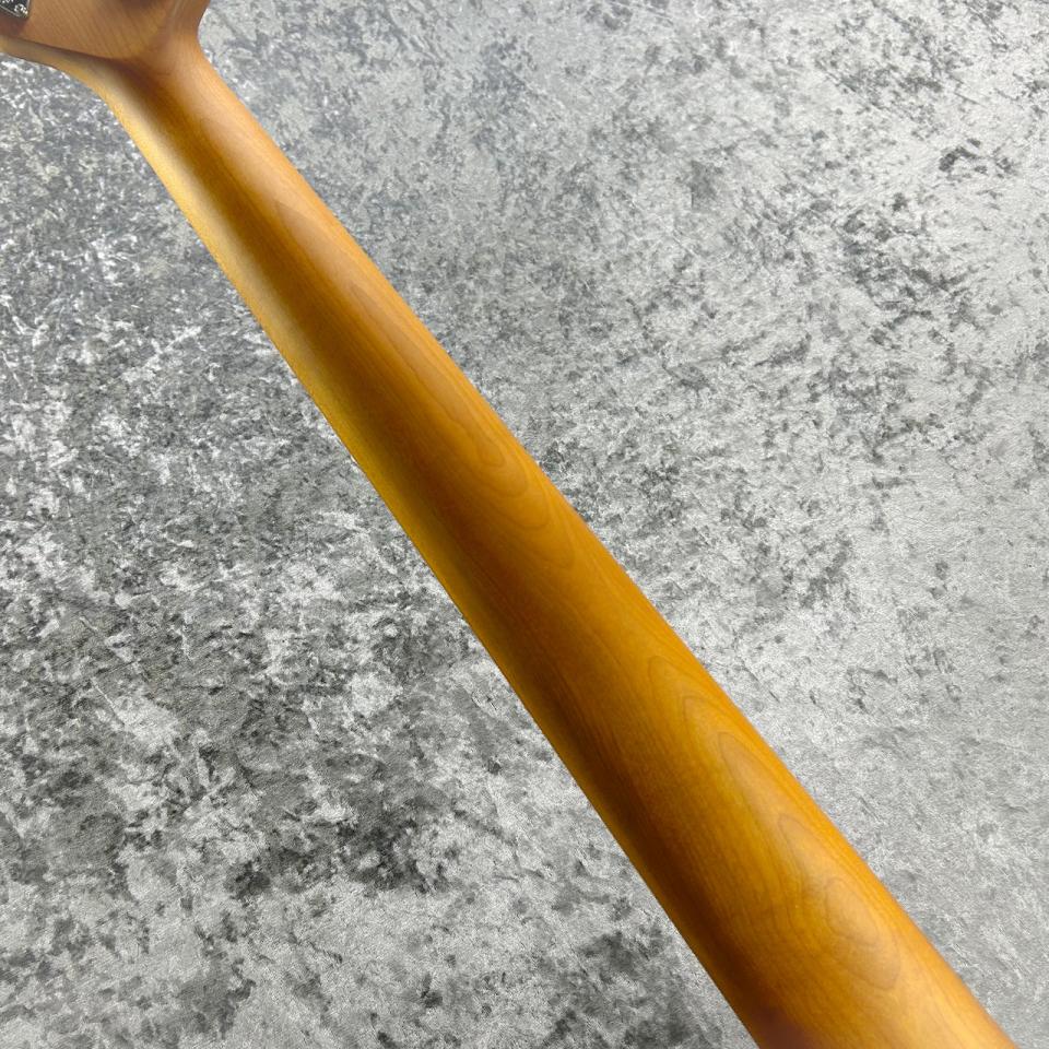 こちらのモデルはオクメボディ、ローステッドメイプルネック、モラード指板のマテリアル。