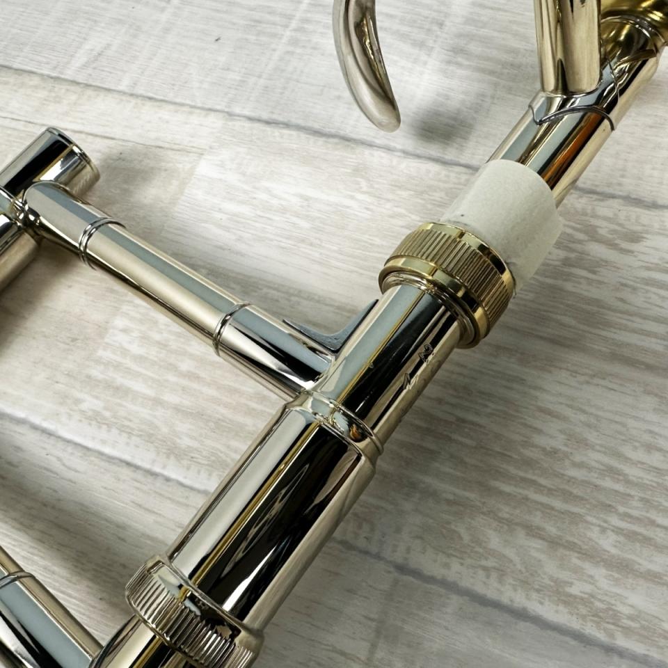 内径が13.90ミリの太ボアのスライドと豊かで遠鳴りがする8-1/2インチのハンドハンマードの1枚取りベルは、広いダイナミックレンジで暖かくて力強い音色を生み出します。