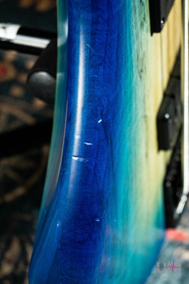 ボディはアッシュバックで何かの木がトップ、ヘッドは3対2のレイクランドのようなスタイルのアクティブベースです。