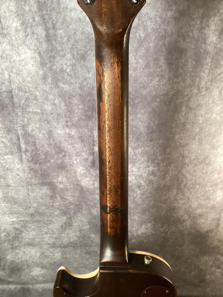 マホガニーにメイプル板を挟み込んだパンケーキボディ、3ピースマホガニーネック、ローズウッド指板と仕様は同年代のLespaul Deluxeに準じています。
