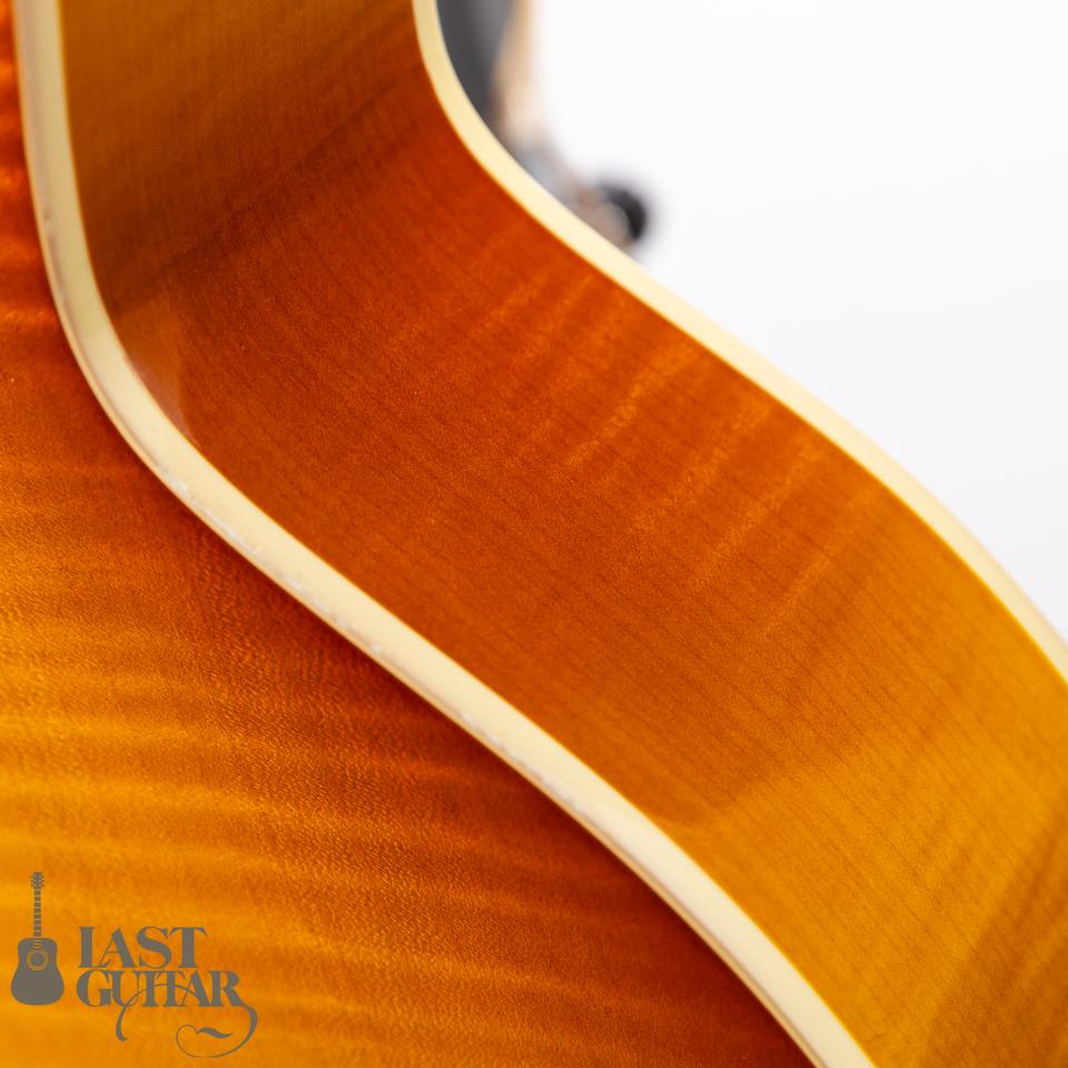 Bruce J Kunkel氏プロデュースによって生まれた17インチボディ・フルアコモデルです。ギブソンは伝統を守りながらも進化し続けていますが、このモデルにおいては、単板を削り出しではなく、プレス加工によってアーチ形成されたオール単板仕様のモダンなアーチトップギターです。