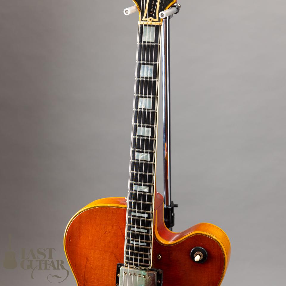 本機は、シリアルナンバーレンジとラウンドカッタウェイの仕様から判断して1969年製としております。淡い色合い、全体にびっしりと入ったウェザーチェック、色づいたバインディング、パーツの経年変化など貫禄が物凄いバードランドで、ギブソンヴィンテージ好きにはたまらないルックスではないでしょうか。サウンドもとてもスイートなトーンでプレイヤーを包み込んでくれます。プラグインしたサウンドは、もちろんですが時を経た個体の生の鳴りも素晴らしいです。