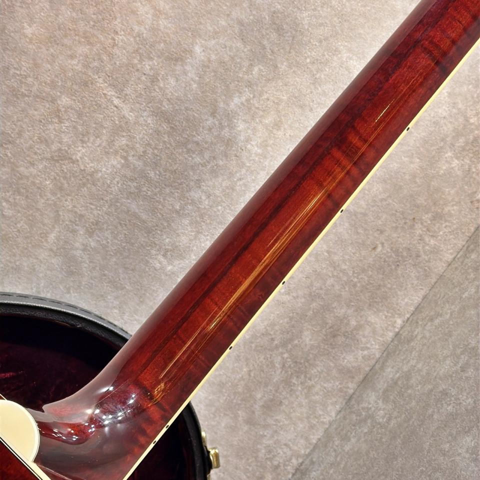 トップのスプルースと、サイド&バックのキルト・メイプルによるコントラストも美しく、個性的で存在感のあるルックスが魅力的な一本。