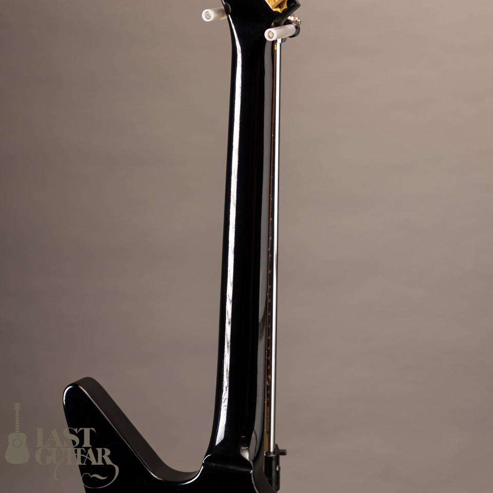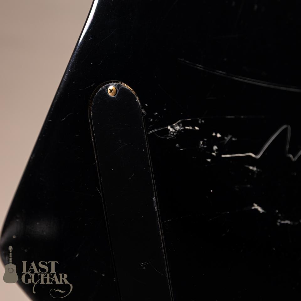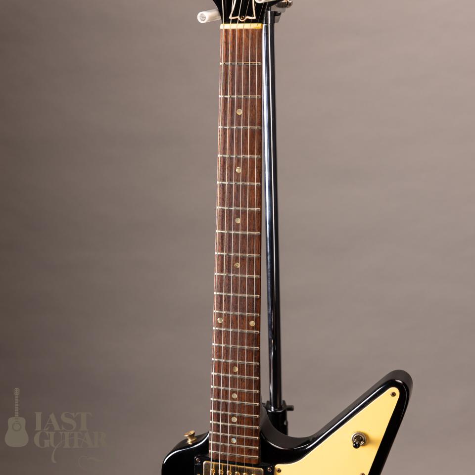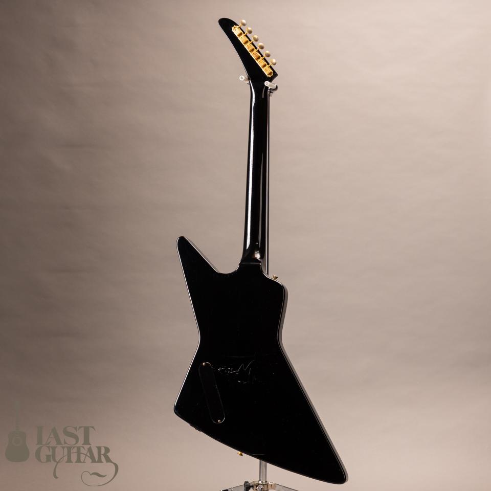 外観ですがブラックのカラーリングと経年の変化で焼けたピックガード、燻んだゴールドの金属パーツが非常に渋い雰囲気を醸し出しております。またエクスプローラならではの角張ったボディーシェイプと相まってかっこ良いです。
