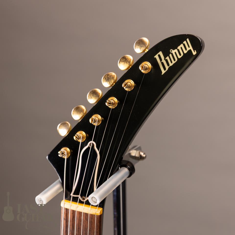 当時、Gibson系のコピーブランドの中では高い評価を受けていたフェルナンデスが展開していたブランド「Burny」。本機はジャパンヴィンの中でも人気の高い80年代の「The REVAIVAL」シリーズにラインナップされていた、76年スタイルのエクスプローラタイプです。76年スタイルを忠実に再現しており日本の職人によって完成度の高い一本に仕上がっております。