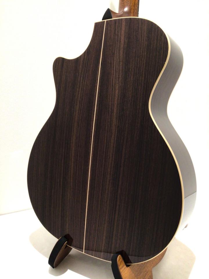 814ceはTaylorを代表するボディ形状、GA(グランド・オーディトリアム)タイプを採用し、トップにスプルース、サイド・バックにローズウッドを使用したTaylorのハイエンドモデルです。MartinのD-28や000-28、GibsonのJ-45のようにブランドを代表するモデルが存在しますが、814ceはTaylorにとってそのような位置づけのモデルと言えます。