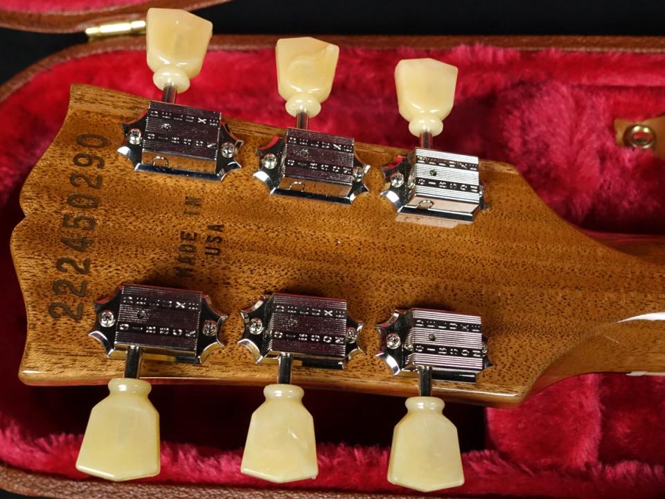また、ABR-1 Tune-O-Maticブリッジ、アルミ製ストップバー・テイルピース、キーストーンボタン仕様のVintage Deluxeチューナー、ダイヤルポインター付きのエイジド・ゴールド・トップハット・ノブを搭載。