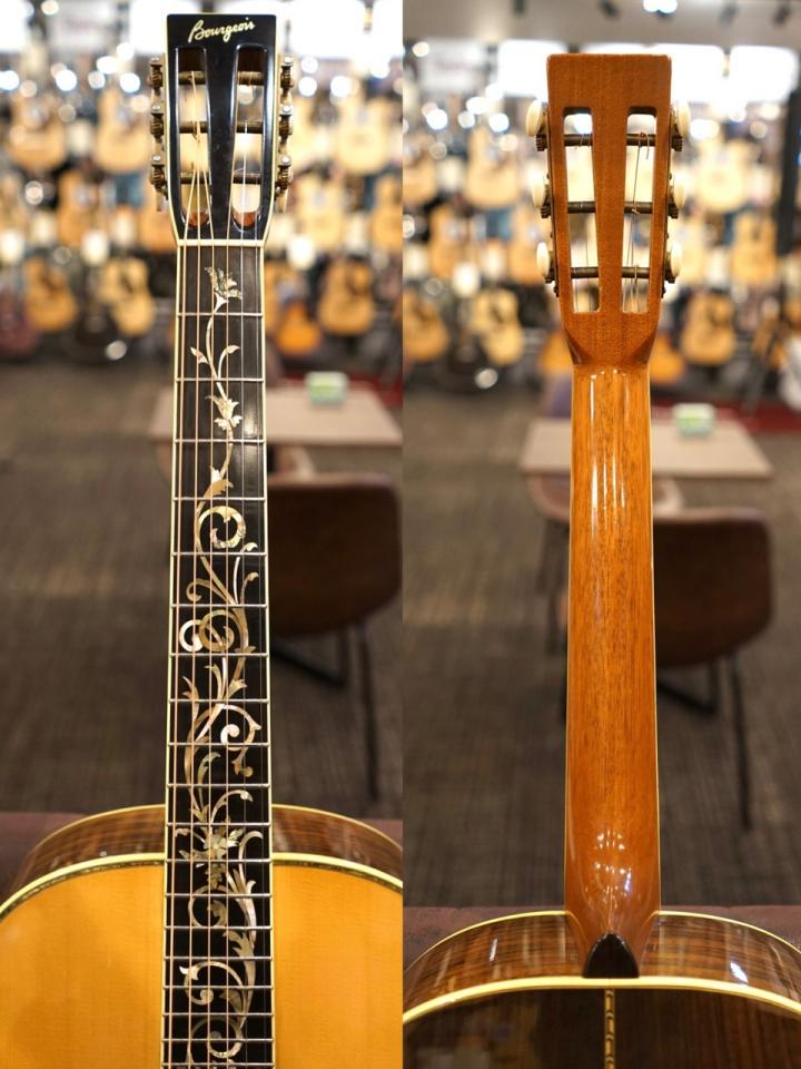 Bourgeois(ボジョア):1986年、ダナ・ボジョア(Dana Bourgeois)はエリック・ショーンバーグ(Eric Schoenberg)と共に設立したSchoenberg Guitarsでマーティン社の生産協力を得てソロイストモデル(Schoenberg Soloist)をリリース。後にギブソン社やテイラー社などの設計アドバイザー を務め、1995年、自身の工房「Bourgeois Guitars」を設立。全てに目を行き届かせながら小人数でハイクオリティなアコースティックギターを作り続ける。(Bourgeois/ボジョアのキーワード検索結果はこちら)