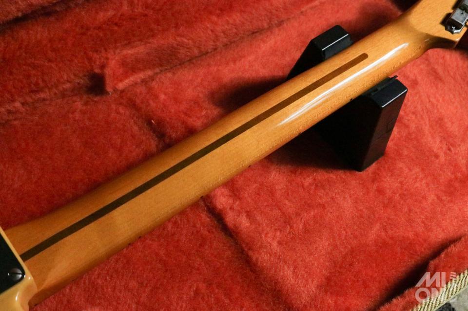 確かなルックス、そして現行品にはない濃い色の上質な木材。90年代らしい適度に経年変化した濃い色のメイプルネックもプレイアビリティも良好。名前の通り枯れたヴィンテージらしいサウンドで、しっかりプレイヤーの求める音に寄り添ってくれます。フレットは減っていますが、現在は通常使用できますし、今後リフレットをしてセレクターも通常の3wayに変えたら、本当に使いやすいギターになりそうです。これを持っておけば出来のいいテレキャスターとしてずっと活躍してくれますよ。