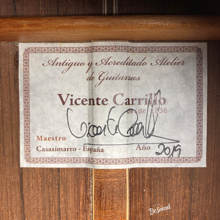 パコ・デ・ルシアやトマティート、カニサレスらの楽器を製作したことでも知られるビセンテ・カリージョの年式新しい中古品が入荷!状態も良好で大音量を実現したコンサートギターです!