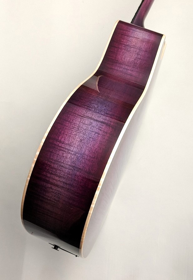 カラーリングはこのギターのために特別に開発されたライラックワインで仕上げており、