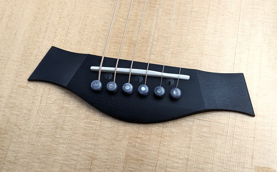 アワビ貝のドットが埋め込まれたグレイ・ボーン・ブリッジピンを採用。