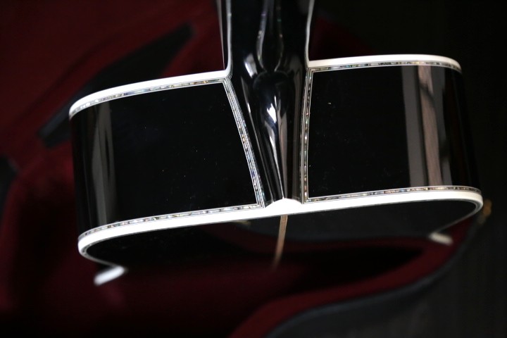 カスタムされたブラックの塗装に、貝細工のインレイが