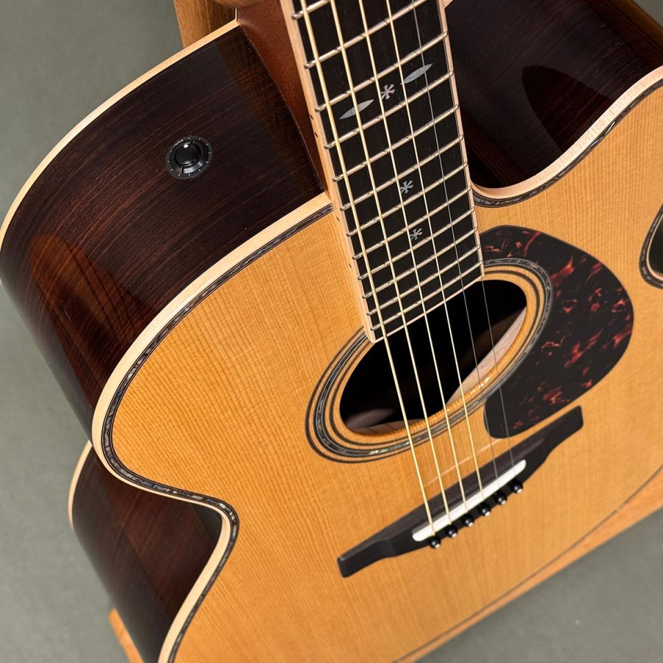 サイド&バックにはインディアンローズウッド単板を使用し、深みのある響きを実現しています。