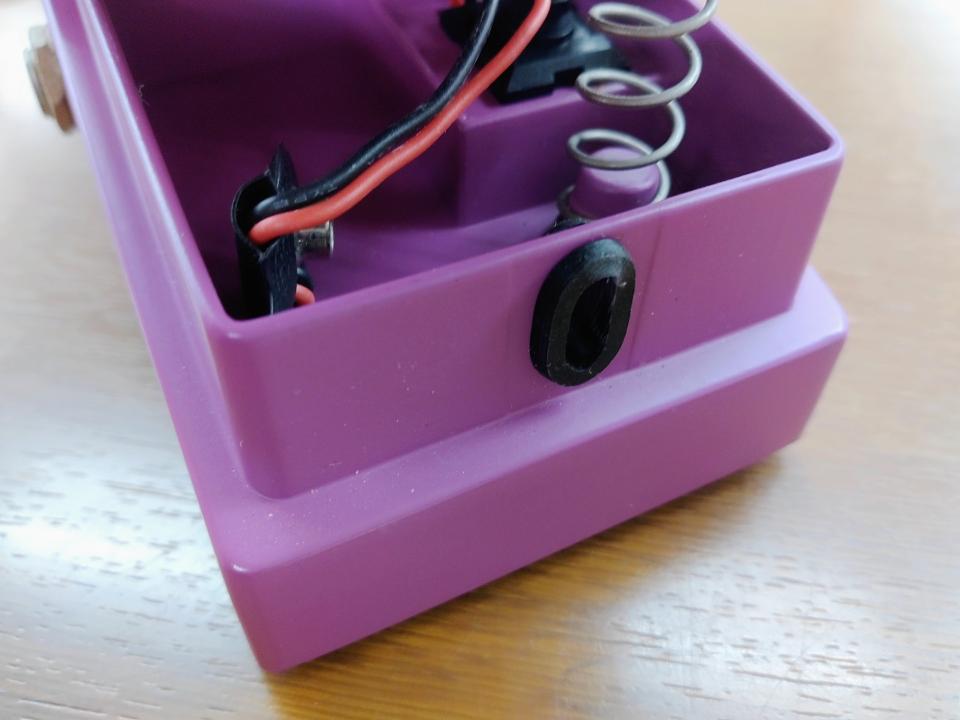 大定番フランジャーとしてロングセラーを続けたBOSS BF-2、MADE IN TAIWANの1990年代製と思われるUSEDです。本来はACA電源時期の個体ですが、PSA-100S2等の現行電源アダプターで使えるように扱いやすく改造されています。サムスクリュー周りのゴムナットは新品に交換済み。その他細かな傷や汚れはありますが、年代を考えれば使用感少なめでキレイです。付属品はなく本体のみになります。