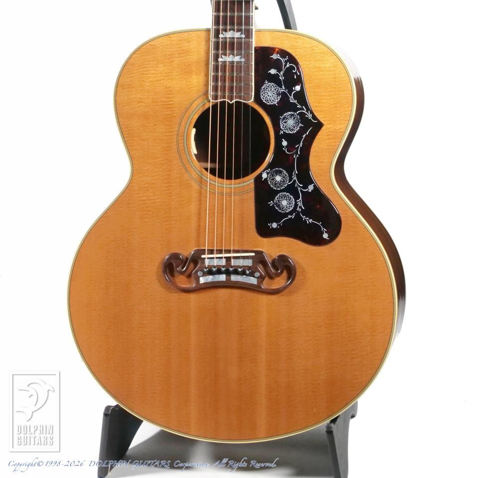 大型ボディ、花柄ピックガード、ムスタッシュ(ひげ)ブリッジが特徴的な『フラットトップの王様』という異名を持ち、Gibsonアコースティックの中でも圧倒的な存在感を放つモデル、J-200。