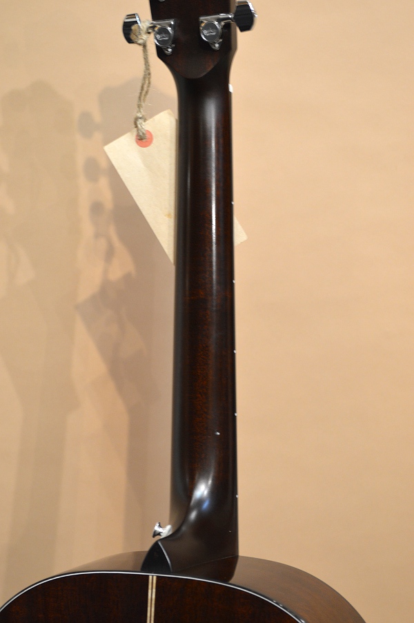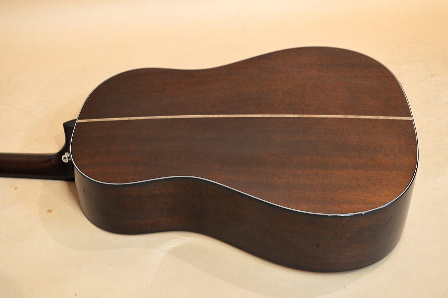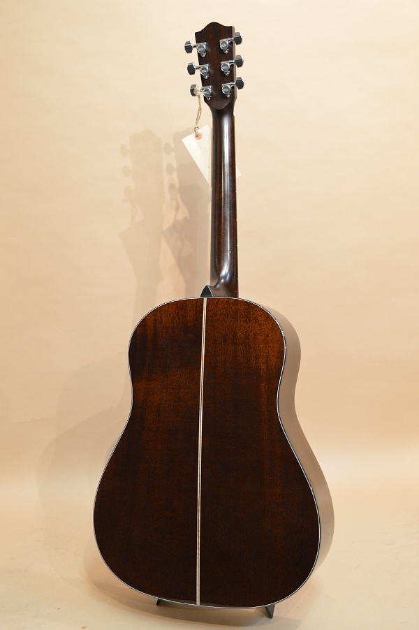 ソリッド・シトカ・スプルースTOP、ソリッド・アフリカン・マホガニーSIDE&BACK、アフリカン・マホガニーNECK、ブラック・リッチライト指板&ブリッジ、ノン・スキャロップ・ダブルXブレーシング、実測43.1mmナット、628mmスケールのラウンド・ショルダー・ボディー。