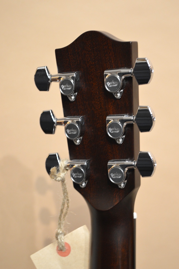 サウンドはバリンッと豪快に鳴るヘッドウェイらしいパワフルでラウドなサウンド!通常ダブルXブレーシングと聞くと音が出辛くなるように想像しがちですが、そこはヘッドウェイに掛かればなんのその、驚くほどのパワー感で咆哮します。ダブルXブレーシングと言っても通常のドレッドノート・ボディーのブレーシングよりは低めのブレーシングが採用されていて、下のXブレースも通常のトーン・バーよりも背の低いブレーシングが採用されていますので、全然パワーが落ちる感じはありません。音はややタイトな出方をするような印象はありますが、逆に1音1音がしっかり発音され、芯のある分離の良いサウンドと言ったイメージです。ゴツンとした芯の太さが感じられながらも、サスティーン、倍音感なども充分で、これはこれで次世代のブレーシングとして非常に完成度が高いように感じます。そして628mmのミディアム・スケール&ラウンド・ショルダーというスペックですので、音が適度に暴れ、ギブソンっぽいザクザク感も感じられます。フラットピックで掻き鳴らせばヘッドウェイならではの力強く遠達性に優れたパワフル・サウンドが得られますし、フィンガーで爪弾いても音の分離が良く心地よいサスティーンを伴ったサウンドが得られますので、プレイ・スタイルやジャンルを問わず、あらゆる場面でヘッドウェイならではのハイ・クオリティーなサウンドをお楽しみ頂ける事と思います!