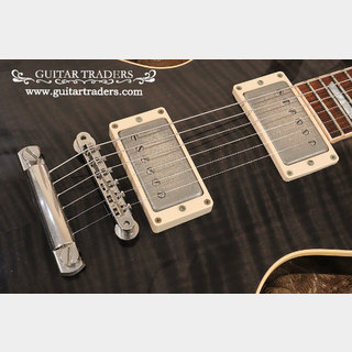 ボディ・トップには5A・クラスのフィギュアード・メイプルを採用、バックにはウエイト・レリーフが施されたマホガニー材が使用されたモデルです