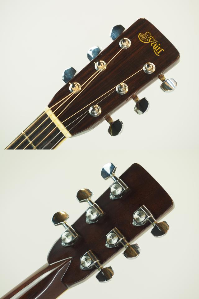 S.Yairi(エスヤイリ):1938年、矢入貞雄氏が矢入楽器製造として名古屋市で創業。1970年代には国内の著名ミュージシャンに愛され、事業を拡大したが、フォークソングブームが去り、1982年に倒産。その後2000年にキョーリツコーポレーションのブランドとして矢入寛氏の監修で復活。YD,YF,YN,YE,YMなど。現ヤイリギター(K.Yairi)と矢入楽器製造は別事業体。(S.Yairi/エスヤイリのキーワード検索結果はこちら)