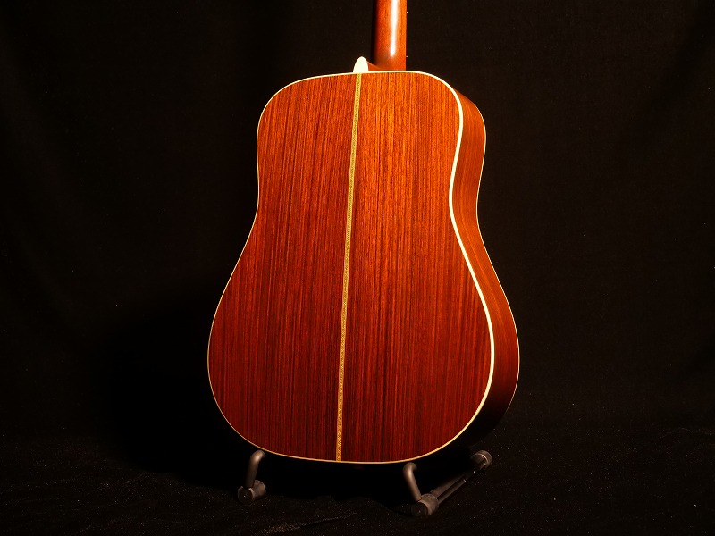 ドレッドノートボディに、トップはスプルース単板、サイド&バックはインディアンローズウッドの単板でいずれも厳選された良い杢目の材が使用されています。