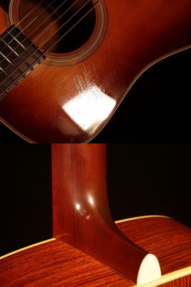 本器は1972年製、当時マーチンの社員が自身のために製作したとされるエンプロイモデルです。エンプロイモデルは一般流通することが少なく、非常に希少な存在です。 仕様からは「HD-28」タイプの戦前仕様を思わせる内容ですが、当時はまだ戦前仕様モデルは市販されておらず、「HD-28」が登場するのは1976年以降となります。 そのため本器は、後のHD-28へと繋がる先駆的な1本とも言える、極めて価値の高いモデルです。
