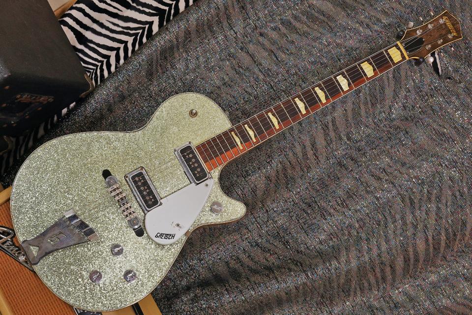 1956年製のグレッチ・#6129「スパークル・ジェット」、通称「シルバー・ジェット」が訳アリお買い得なプレイヤーズ・コンディションで入荷しました。