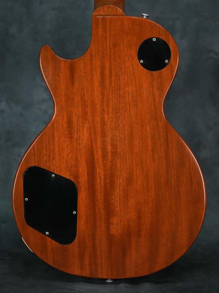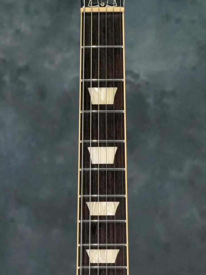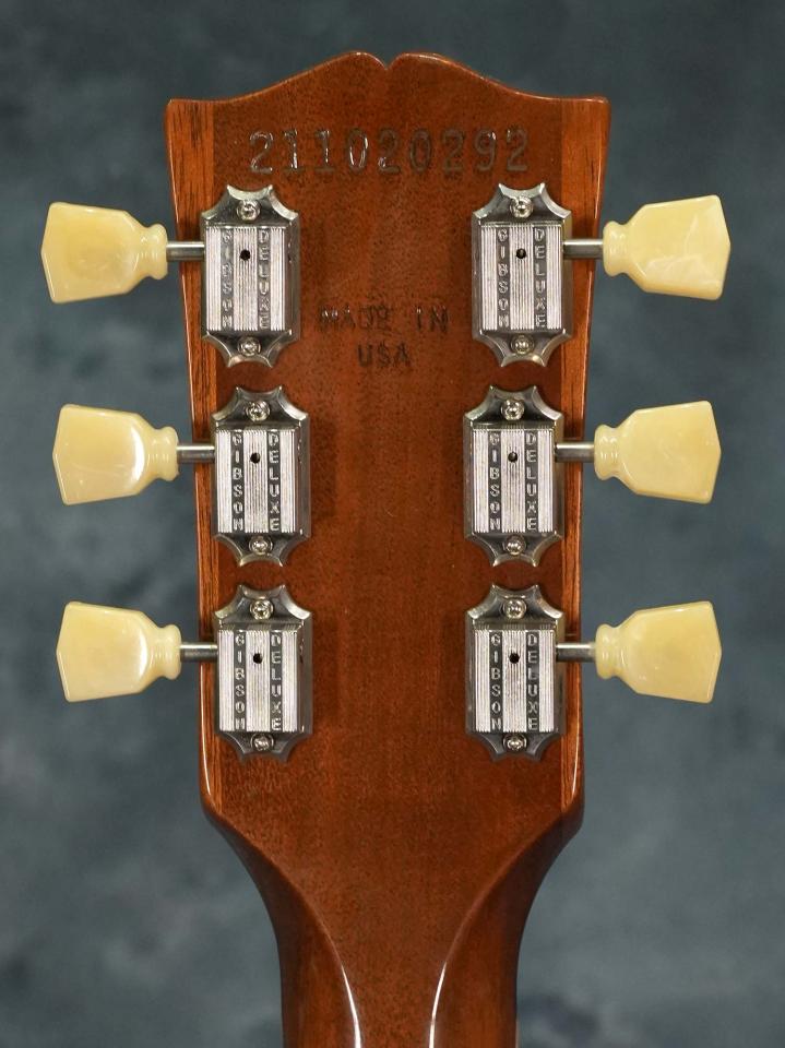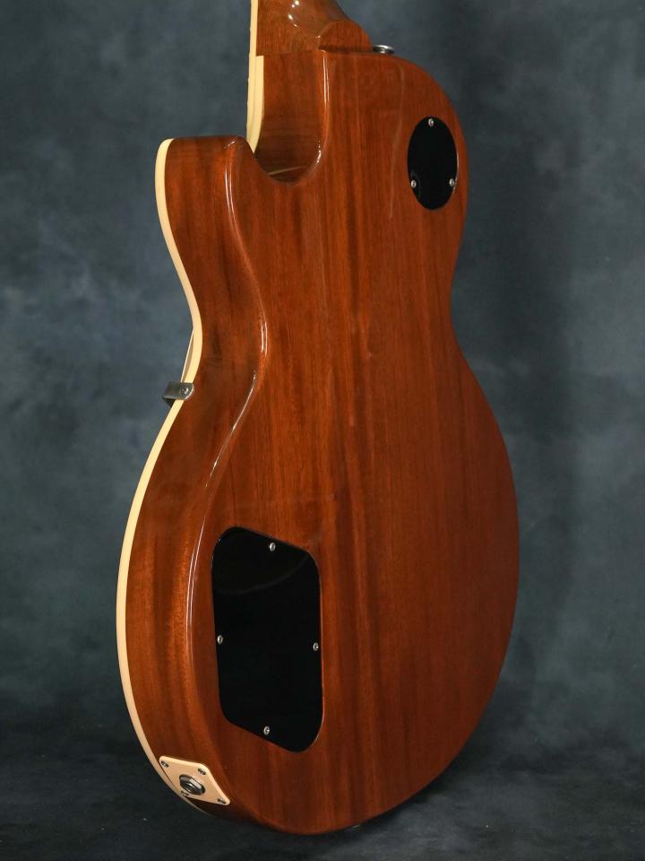 ハムバッカーとは異なった粘りの有るP-90のレスポールサウンドが心地よく、4.03kgとGibson USAとしては比較的軽量でバランスの良いウェイトに加えて、色濃い指板のローズウッドとボディカラーのコントラストも映える格好良いルックスの”ゴールドトップ×P-90”レスポールをお探しの方にオススメの一本です。