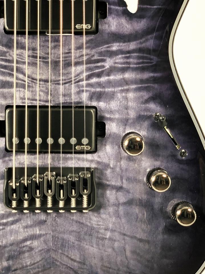 ピックアップにはEMG 57-7H(R) / EMG 66-7H(F)with Brushed Black Chrome Coversを搭載。バランスのとれた明瞭なサウンドを保持しつつ Low B のトーンを強化。